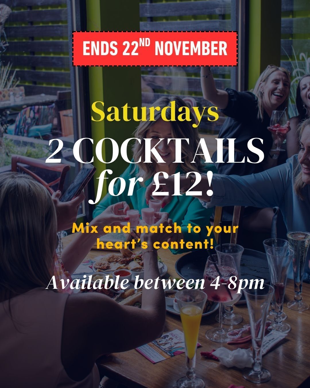 Double the Drinks, Half the Price AND Two Cocktails for £12! TWO GREAT OFFERS every weekend, but hurry, offers end soon!